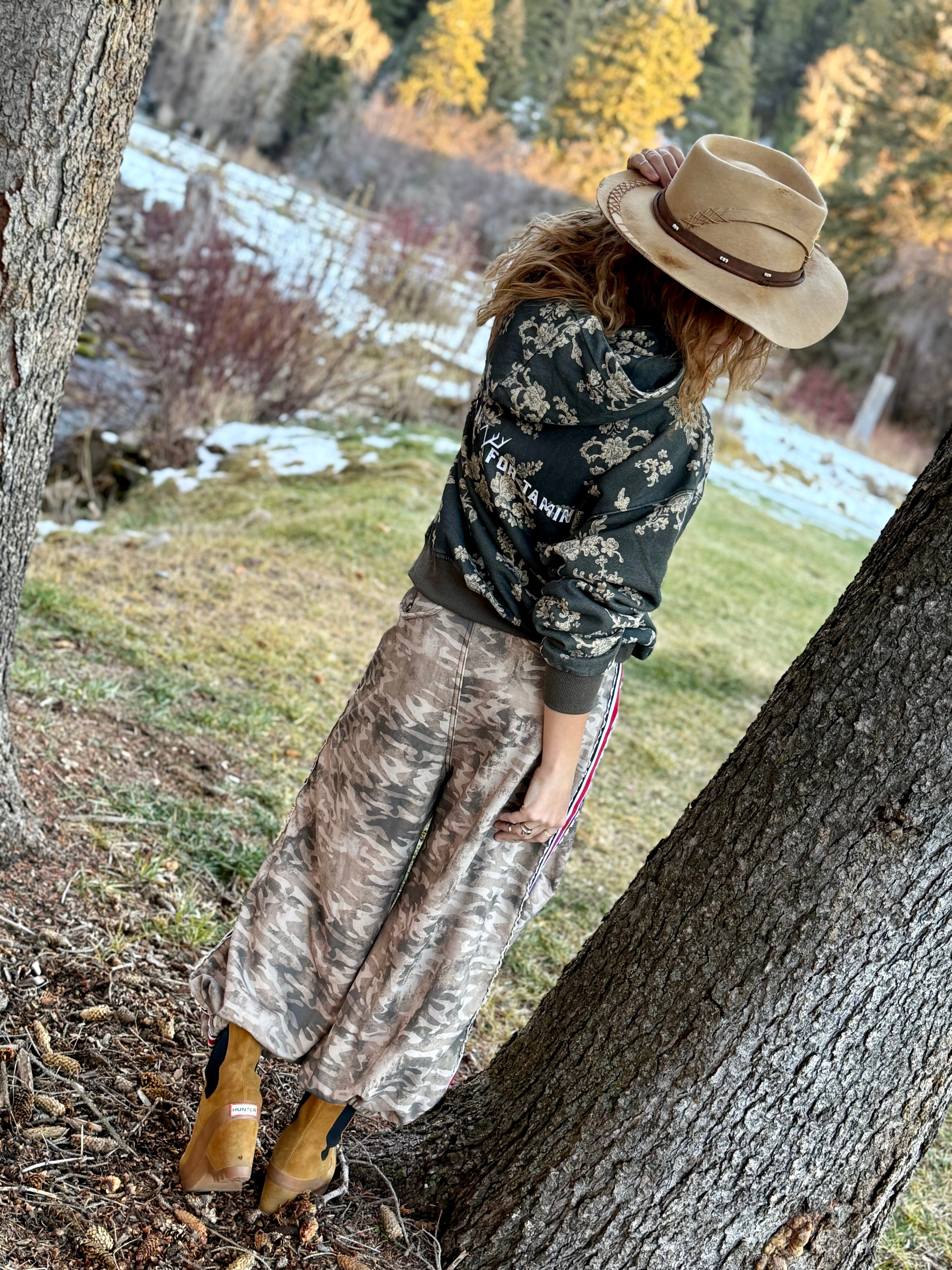 This pullover was made for the ones who move through the world untamed. The allover floral print softens the edge just enough, while the washed charcoal base and signature Wild Ain’t for Tamin mark keep it rooted in grit, growth, and independence. It’s the kind of layer you reach for when the air turns cool and the day has no plans — just movement.