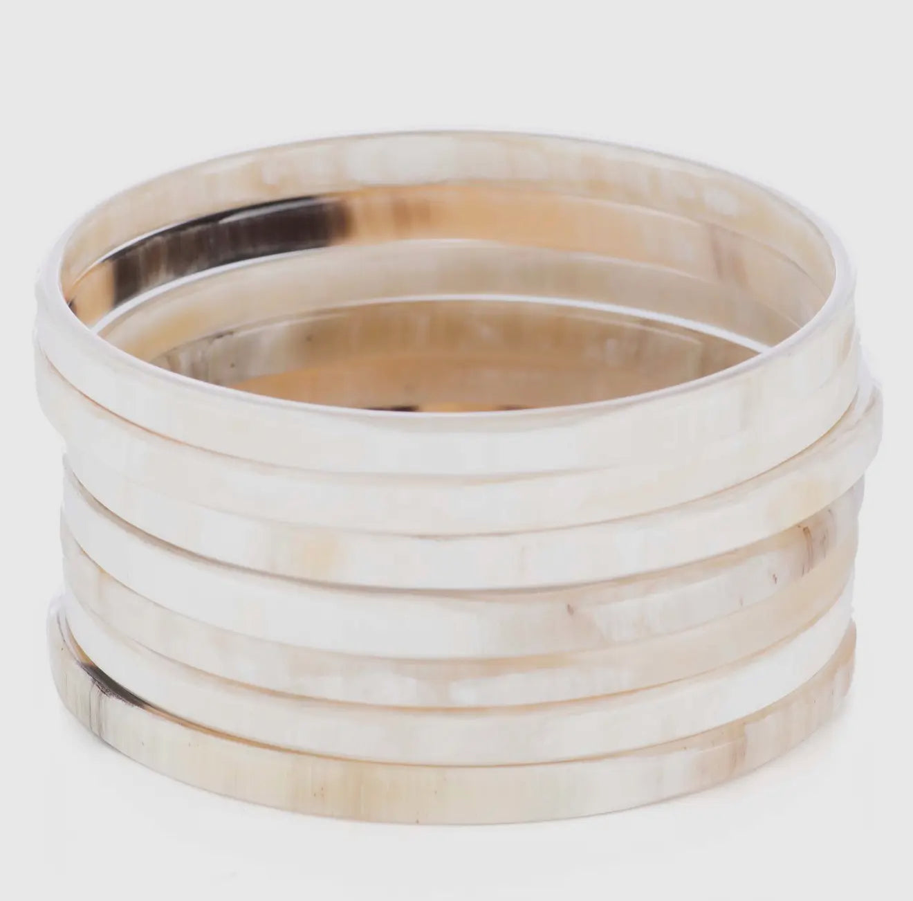 These slim buffalo horn bangles bring effortless elegance to your everyday look. Hand-carved and polished to a soft, glossy finish, each bangle features warm ivory, cream, and honey-toned marbling unique to natural horn. Their lightweight design makes them perfect for stacking—wear a few for a minimal look or layer the full set for a chic, textured statement.