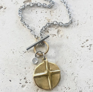 BUFFALO HORN & BRASS Linked Square & Oval Earrings