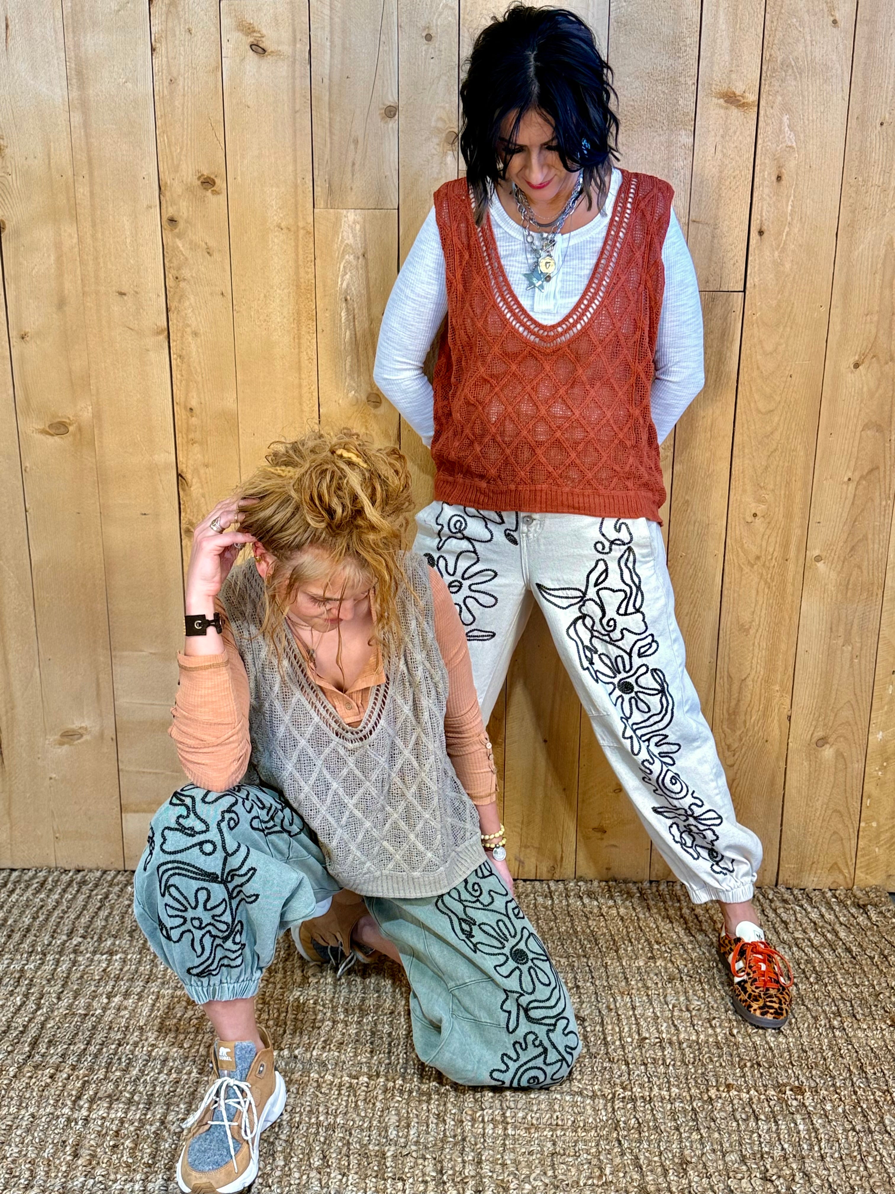 This open-weave cotton crochet vest was made for women who layer with intention and live a little louder. The striking diamond knit and deep neckline create movement and edge — whether thrown over a thermal, worn bare-armed, or layered over something unexpected.