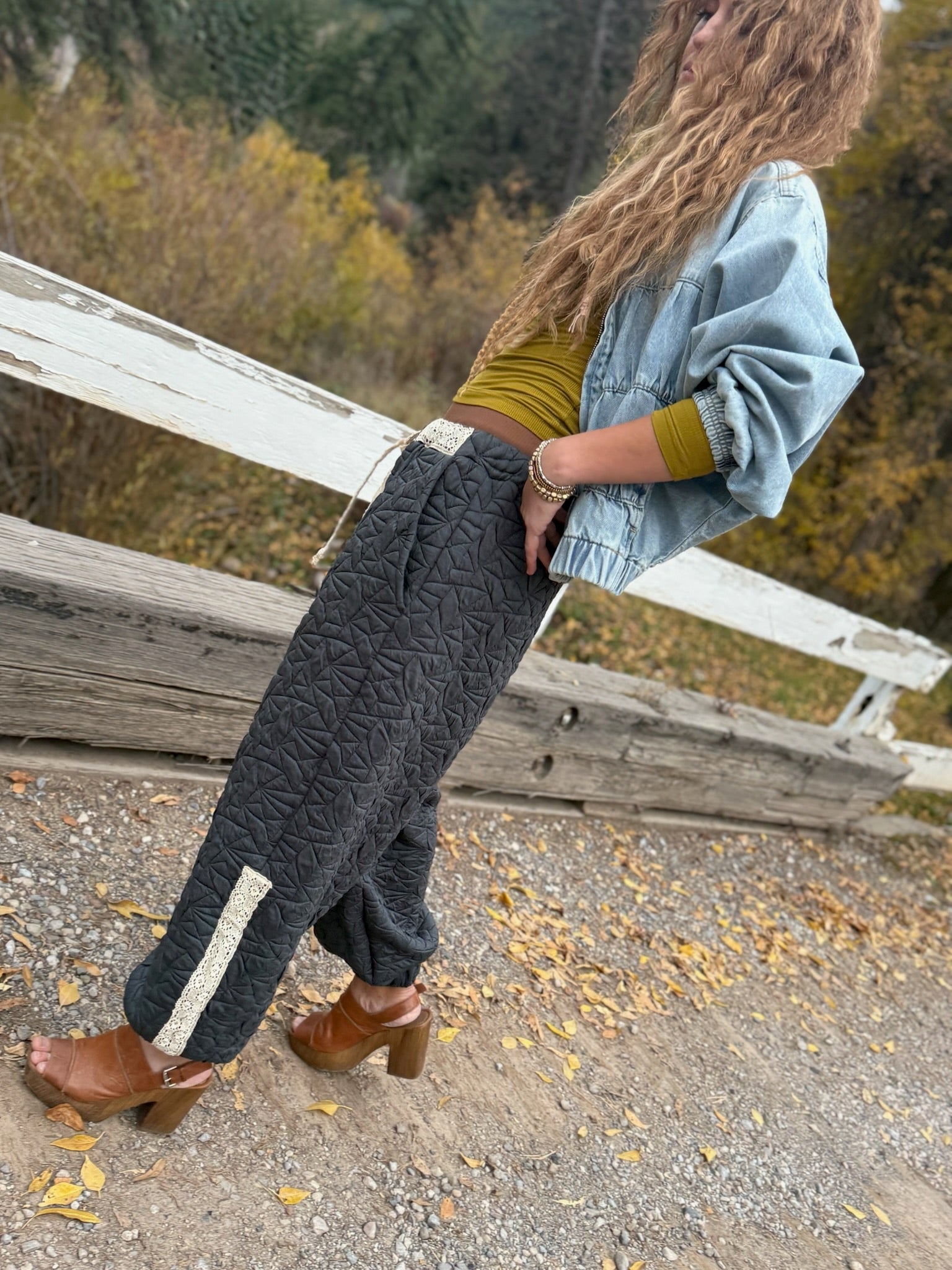 When the first hint of chill settles into the valley and the trails quiet down, these quilted pants bring the perfect blend of comfort and character. They’re the kind you pull on for creek-side strolls, cabin mornings, or cozy afternoons in town — warm without bulk, relaxed without feeling sloppy, and full of that easy Wyoming charm.