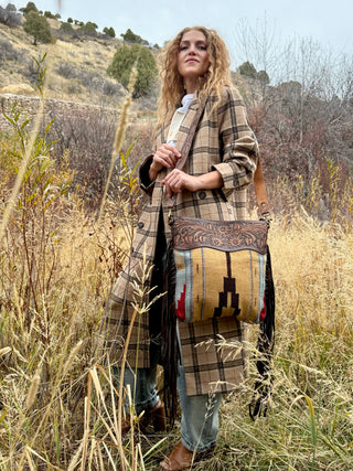SPIRIT in the SKY WOOL & HAND TOOLED LEATHER & FRINGE Purse